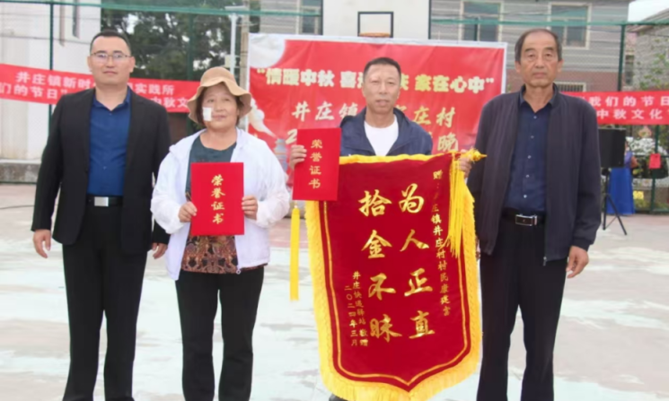 上图:延庆区井庄镇井家庄村委会为拾金不昧村民颁发荣誉证书