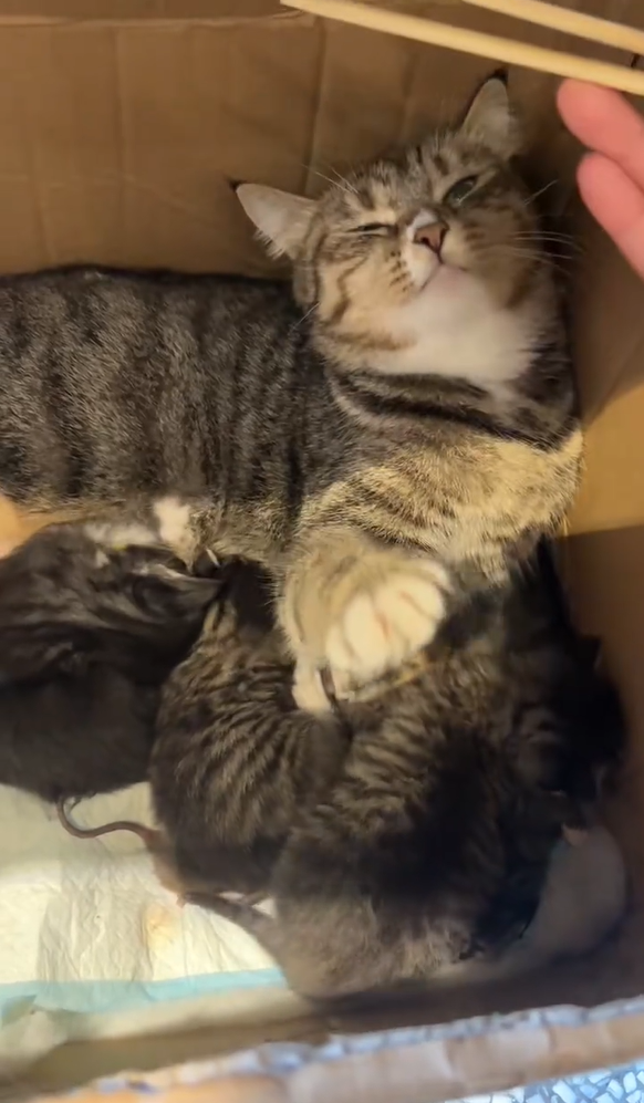 事情是这样的,湖南长沙一位小姐姐近日分享了一段温馨的猫咪一家日常视频。画面中,拍当下一群小猫聚集在猫妈妈身边喝奶,不过这时眼尖的小姐姐却发现有些不对劲,有条长长的尾巴露了馅,立刻拿起筷子朝窝里冲了过去。